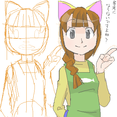 - なな様へ。画面に収まる様に軽く下描きをするとか、中心線と左右のバランスに気を付ける、位でしょうか・・・ -- おかあさん (2012-04-26 18:54:40)