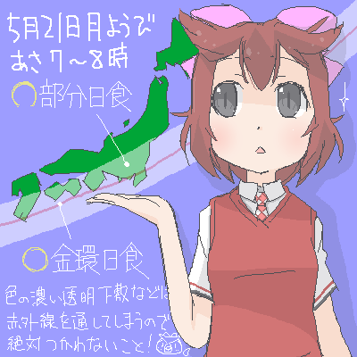 - 金管日食、見ましたか?私は、リングを見ましたよ! -- なな (2012-05-21 19:36:16)