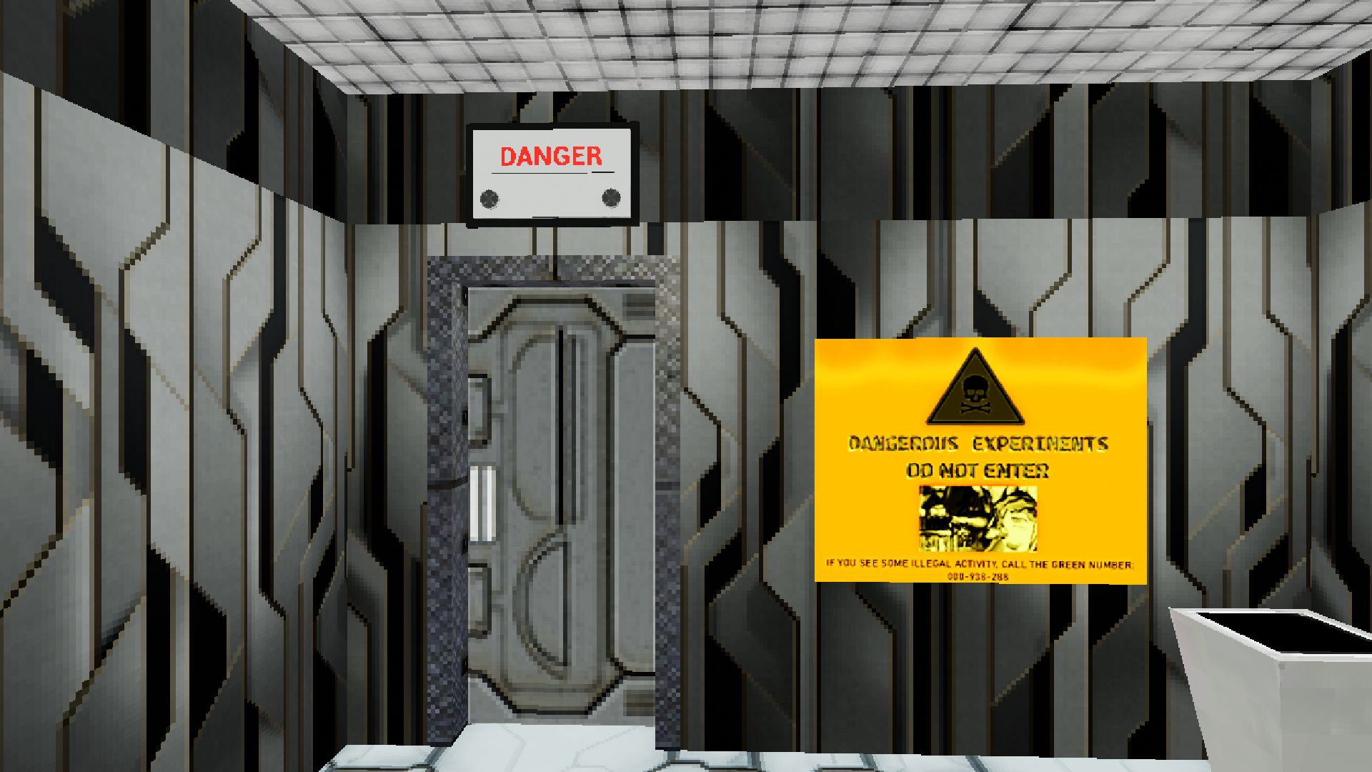 - In this level, there is a room that appears to be a laboratory with a sign that says “DANGER” in red letters. This room is filled with black potions, which are harmless to touch, but if you examine them, you will die instantly, so be careful.