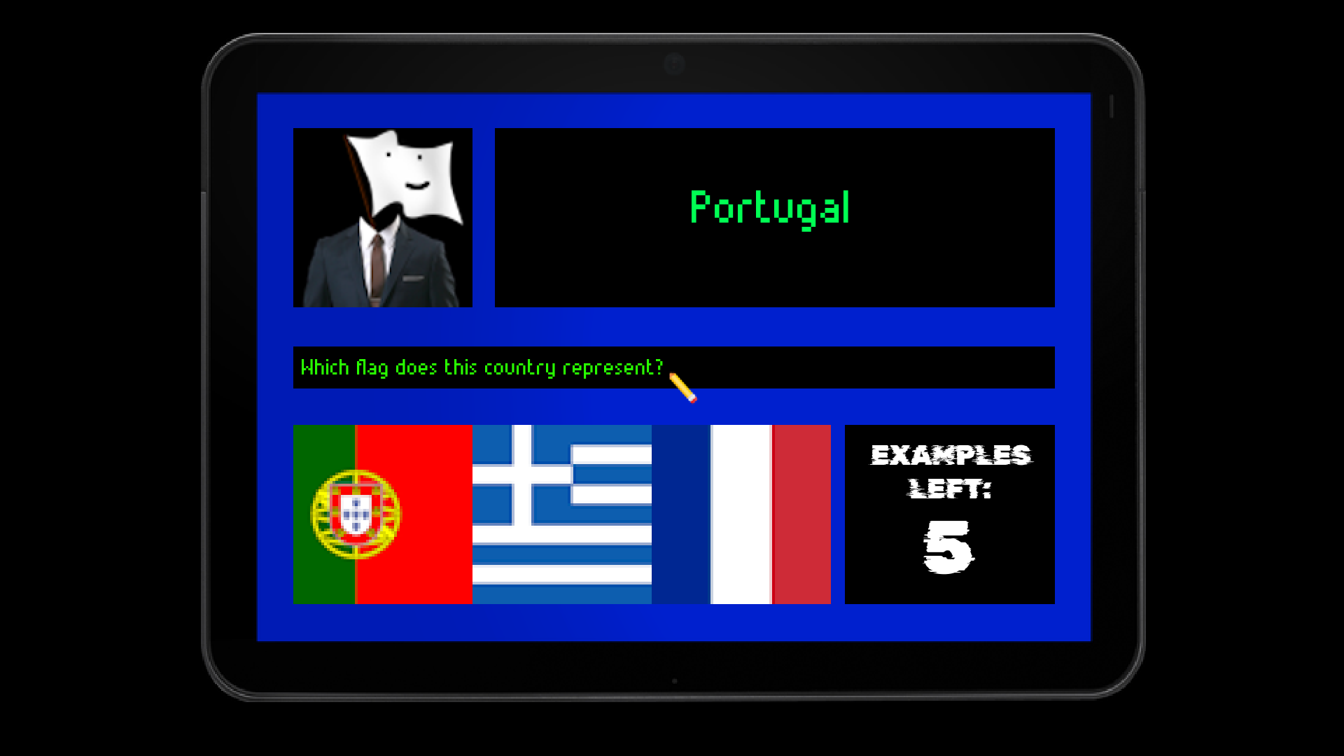 - When you use a notebook, the name of a country and three flags will be displayed. The player needs to click and select the flag of that country.