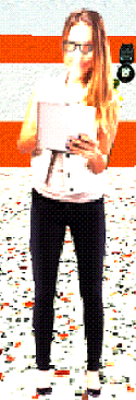 - 白い服を着て黒いパンツを履いたブロンドヘアの女性の姿をしている。また、顔には黒い眼鏡を付け、計算機科学の先生らしく、手には小さな端末を持っている。ただし、人間であるとは明示されていないため、彼女が本当に人間かどうかは不明である。