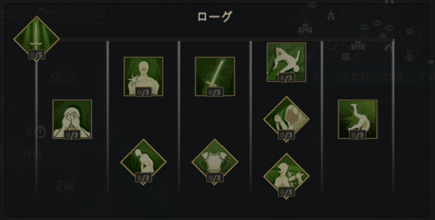 最初のパッシブはLv1~Lv5まで、以降のスキルはLv1~Lv3まで成長させることができます。