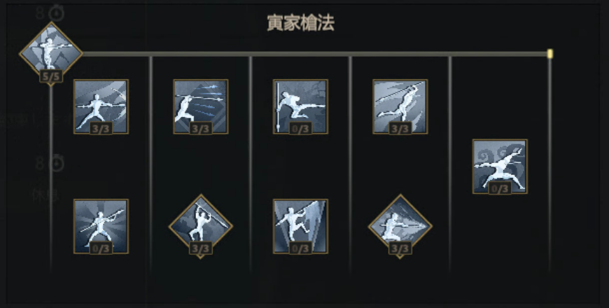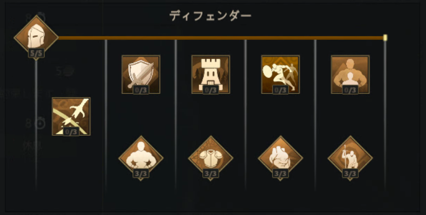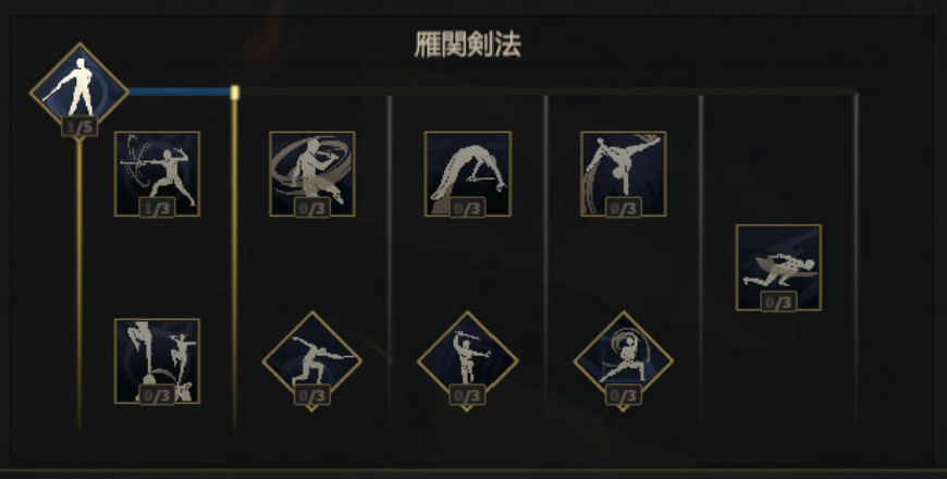| 3 | カウンターカット | ブロック率が増加し、攻撃をブロックした際に15/20/25%の確率で反撃を行う。 ブロック率 +3/6/9% |