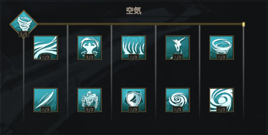 | 基礎 | エアアフィニティ | 斬撃ダメージボーナス +3/6/9/12/15% 斬撃耐性 +3/6/9/12/15% |