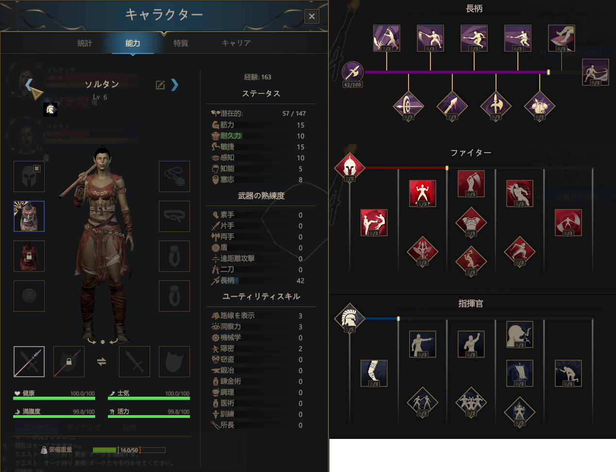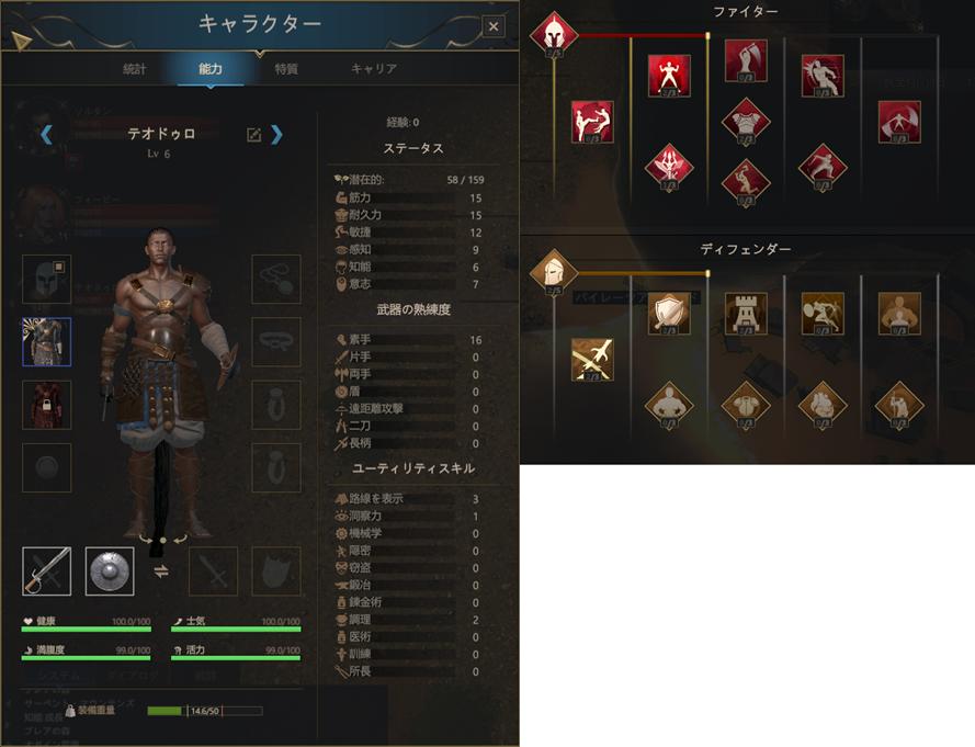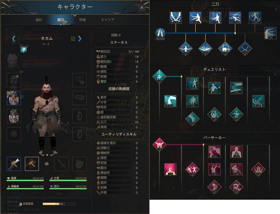 | 決死 | 体力が30%を下回ると、近接攻撃のダメージが20%増加する。 | ||||||
