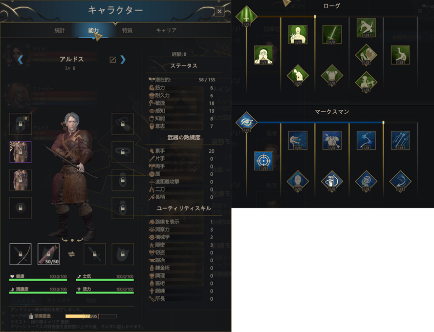| 探検家 | 路線を表示+1、洞察力+1 | ||||||