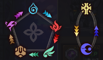 属性は「無」を除き 火/水/風/土/雷/光/闇 の7種類が存在します。