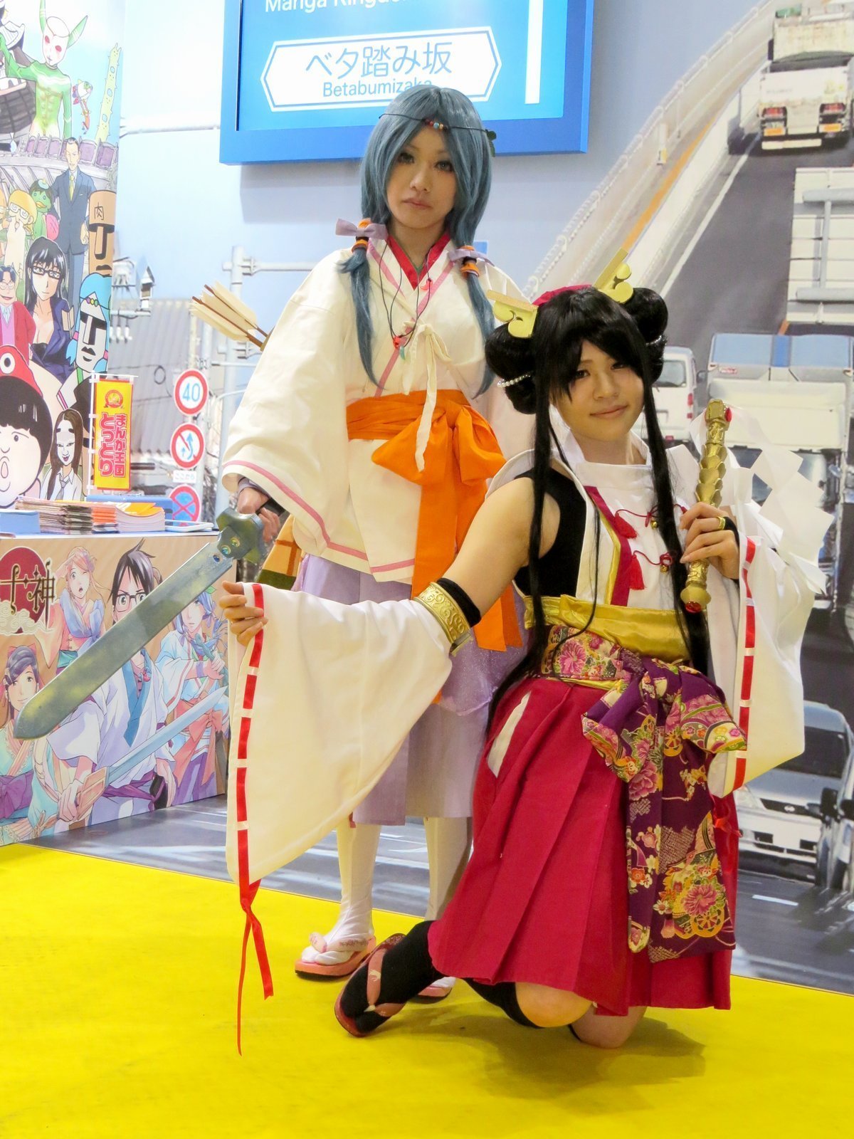 まんが王国とっとりブースでは、島根県側のベタ踏み坂をバックに【女神十神】コスプレイヤー撮影という展示。