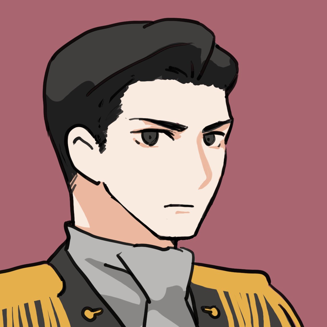 黒髪黒目、顎周りもシャープな精悍な顔立ち。七三の長身細マッチョ。