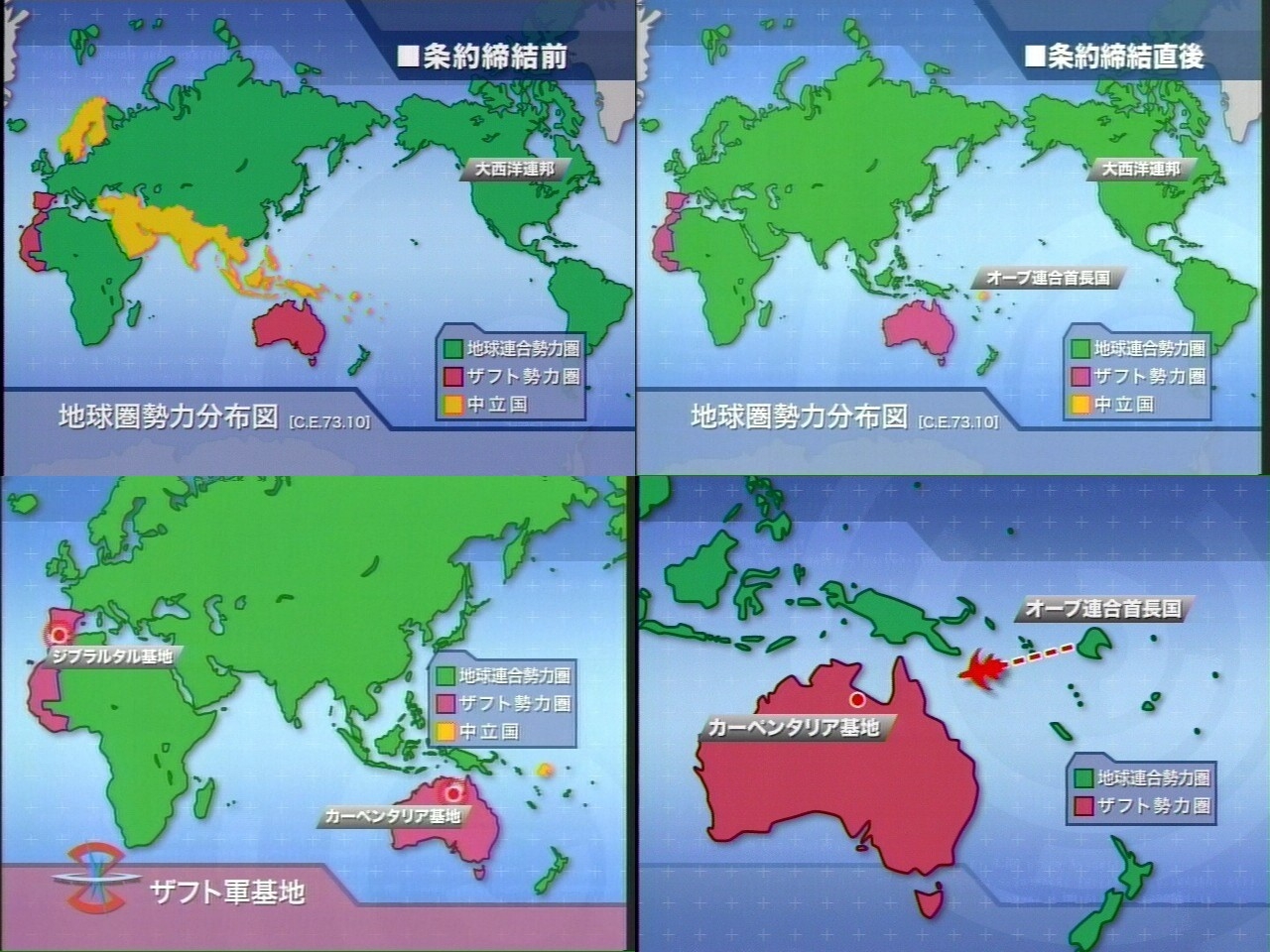 ・プラント不法占拠 ・武力に金を使っておきながら連合のノルマが厳しいと戯言 ・プラント防衛用の連合艦隊にいちゃもん付けてMSで奇襲、撃破 ・強硬手段に打って出たらMS使って逆ギレ ・S2インフルエンザバイオテロ疑惑 ・連合との会談を会場指定した上でテロで爆殺、シーゲル・クラインは無事 ・ノルマ無視して勝手に一部を食料自給プラントへ改造 ・キレた連合が血バレ決行、そしたら報復にエイプリルフールクライシス →これにより10億近い死者が発生するだけでなく 核使用不可によるエネルギー問題や食料不足などその他諸々の被害 ・これだけやっといてカナーバマジックで停戦にこぎつけたのに ブレイクザワールドを事前に防止出来ずに再び地球は大混乱