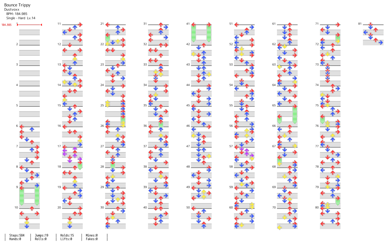 ノーツ数だけみても15と遜色ないし後半は休憩もほぼなく8分と16分を踏まされ続けるので14適正者だとかなり難しいと感じるはず。AIRが18と少な目なのが救い。40くらいまであると15に行ってもおかしくない。 (2020-02-08 10:36:01)
