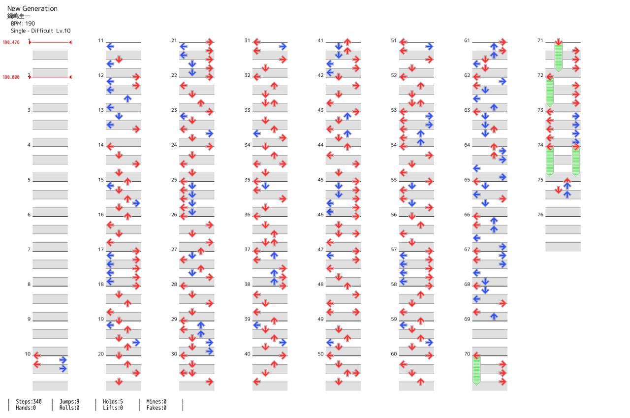 8分は最大9連までで地団駄が主体。それ以外も素直に踏めるので地団駄で大きく取りこぼさない限り足10では楽な方。 (2014-07-15 19:48:17)
