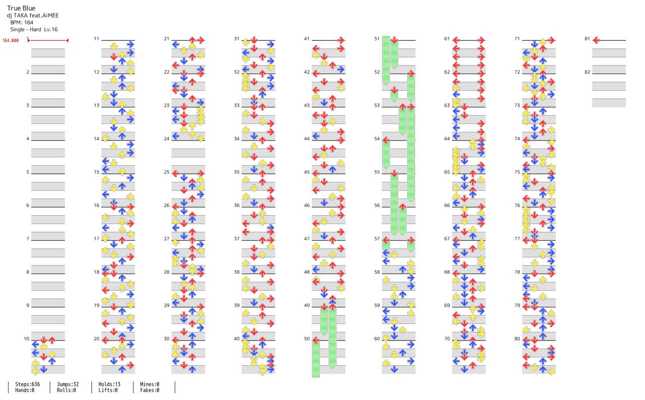 ノンバーでも踏みやすいし序盤以外捻り要素ないが縦ビジが多い・ラストのリズムが不規則かつ高密度で体勢の維持が難しい。 - 2016-04-18 21:33:08