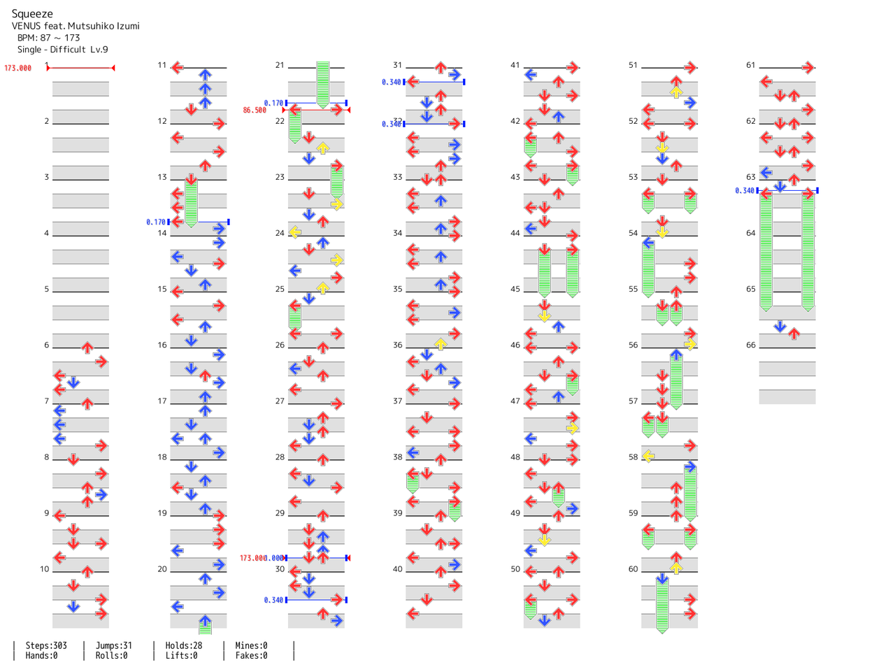 - BPM推移:173-(停止)-173-(停止)-173-87-(停止)-173-(停止)-173-(停止)-173-(停止)-173