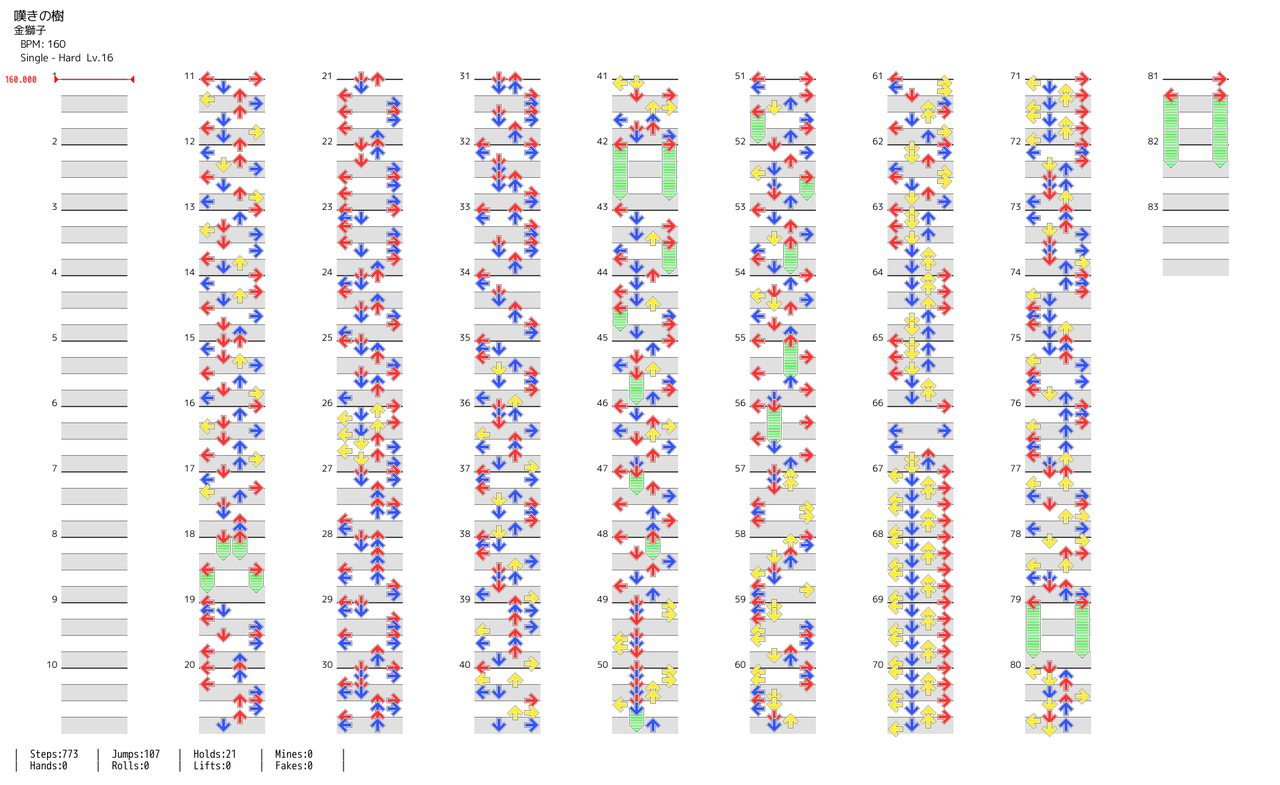 鬼の純正折り返し階段配置と違い、左右配置が混ざった階段配置のせいで鬼以上に踏みにくいし癖が付きやすい。一度癖をつけたら最後、ゲージMAXでも最悪死ぬことがあるには破壊力があるので粘着はNG。もし癖が付いた人は一生LeftかRightしか出来なくなります。 (2022-09-07 19:16:33)