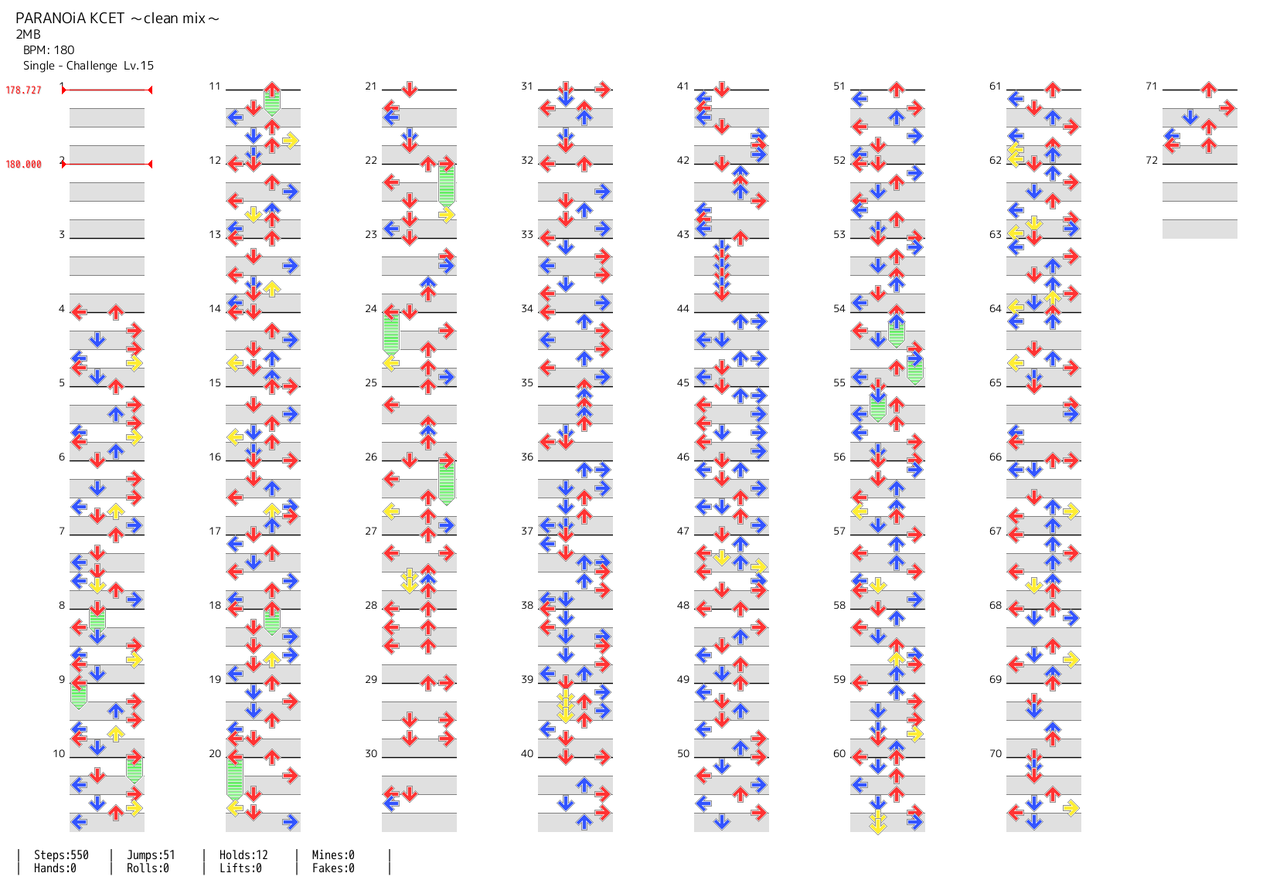 滝配置とフリーズアローはほとんどないけど、足14中上位並みの配置が休憩なしでずっと降ってくるし、癖配置も多めだから足14適正だと結構キツく感じるかも。個人的には15で妥当 (2018-06-27 15:36:56)