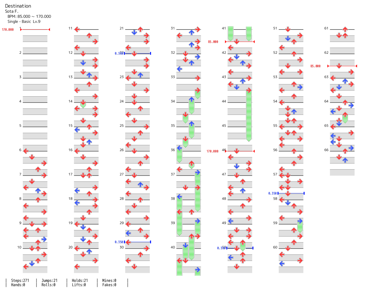 - それぞれ、NOTEでいう赤矢印の直前で1拍停止する。なので、停止で踏めなかった時は、4分のタイミングでもう一度踏めばOK。