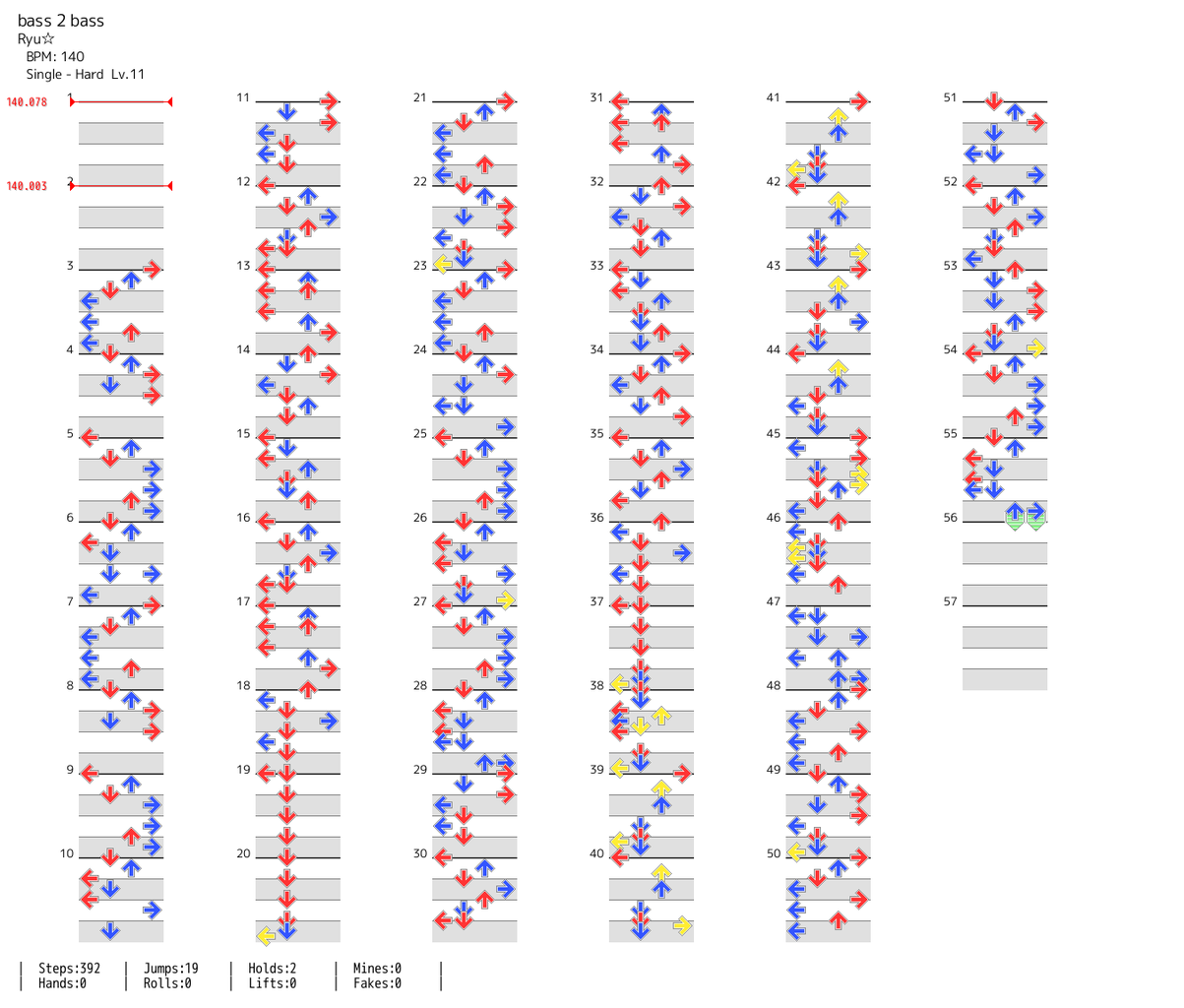- 縦連からの16分が特徴的な譜面で、足11では強め~詐称気味か。なお最後の縦連からの16分3連だけスイッチが必要。 (2015-12-25 01:41:30)