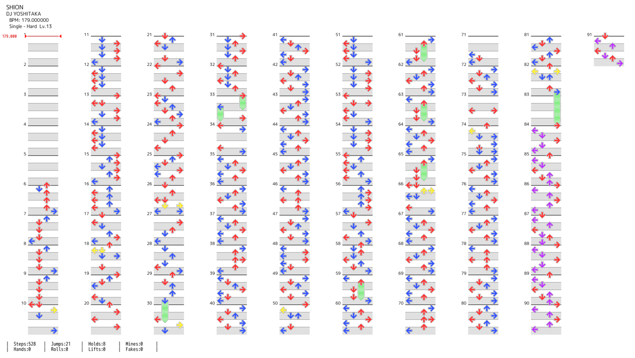 - 最後の3連符地帯を交互に踏もうとすると270度捻りになってしまうので、2小節毎、頭を必ず右足で踏むようにしスライドが良いと思われる。