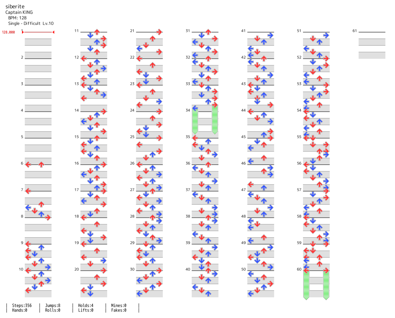 テンポ遅めで交互にすんなりと踏みやすい配置であるが、縦の動きがかなり多くノート数以上に疲れる印象を持った。ウォームアップや早く身体を温めたい時には向いている曲。中級者はこの曲を安定して踏みきれるようにしておいて損はない。 (2022-09-04 15:18:05)