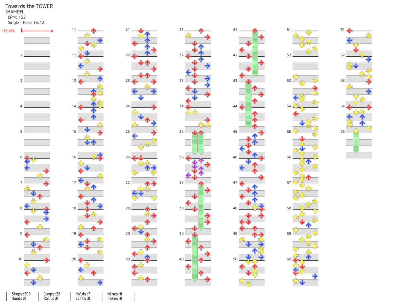 - 変拍子であるため、矢印の色や小節線はほぼあてにならない。等速でのPFC・MFCは12屈指の難易度。曲を聴きこんで純粋な16分の黄色矢印と、変拍子による黄色矢印を分けるとわかりやすい。 (2016-11-25 19:35:00)