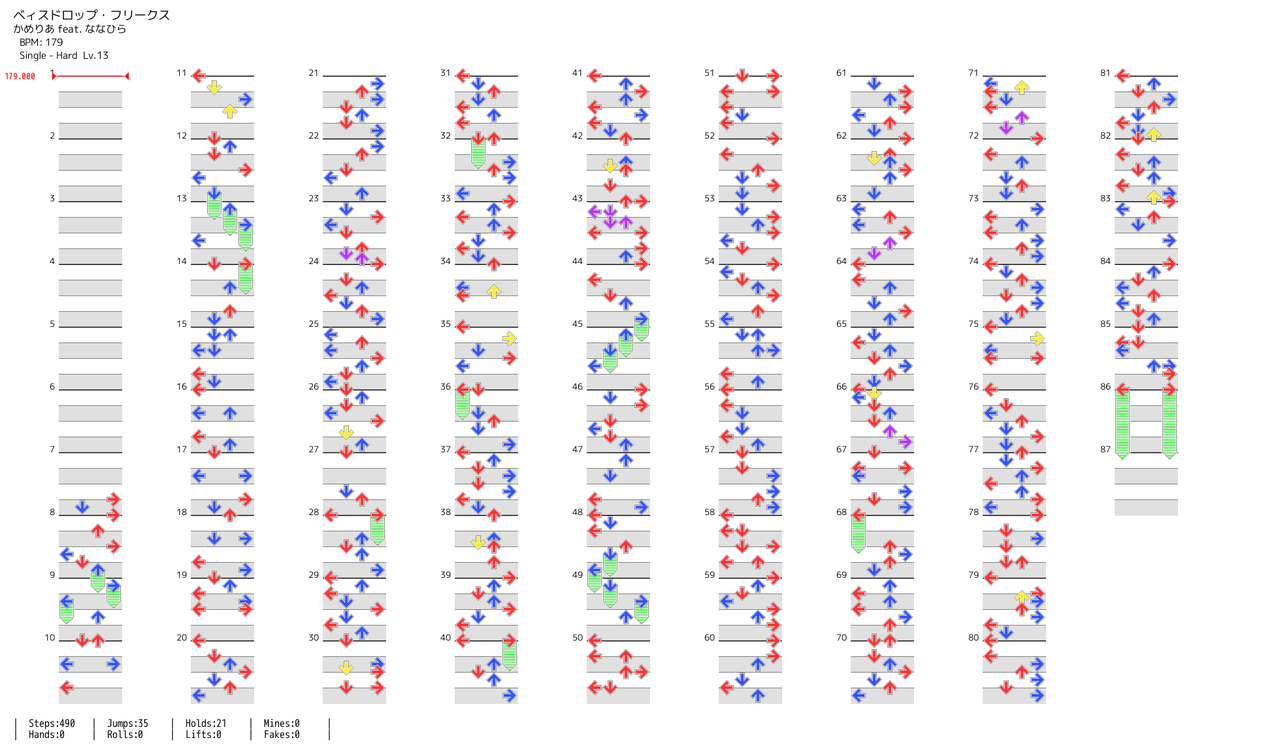 - 移植元のIIDXでは曲名のベィスドロップとフリークスの間に点が付いていた(ベィスドロップ・フリークス)が、DDRでは収録直後は付いていなかった。ただし、8/30頃にIIDXと同じく点付きの「ベィスドロップ・フリークス」に修正された (2016-09-04 19:55:46)