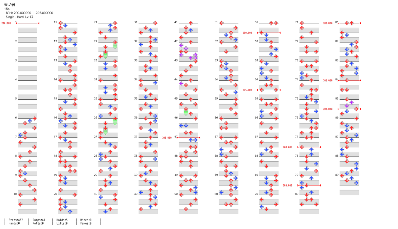 東北やオバピリの様に曲が始まってすぐに1ノーツ目が来るので注意。- 2016/08/30付で譜面が修正され、開始直後の1ノーツが削除。総ノート数が427→426になった。