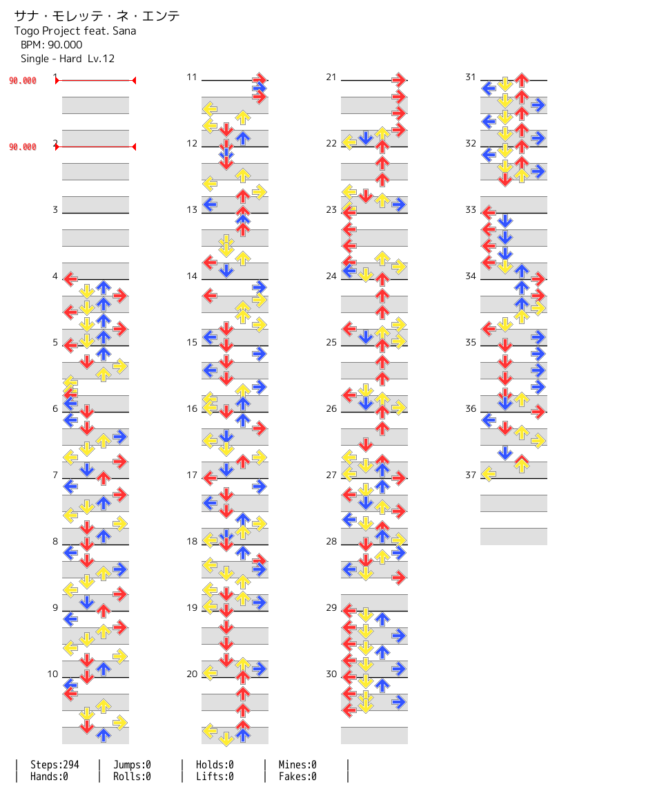 - 16分3連のほか、音あわせで踏む16分も多いので、曲をおぼえると踏みやすくなる。上を目指す人は、ハイスピ無しで低速の見切り力をつける練習にも使えるかと。 -- 名無しさん (2014-08-29 09:46:38)