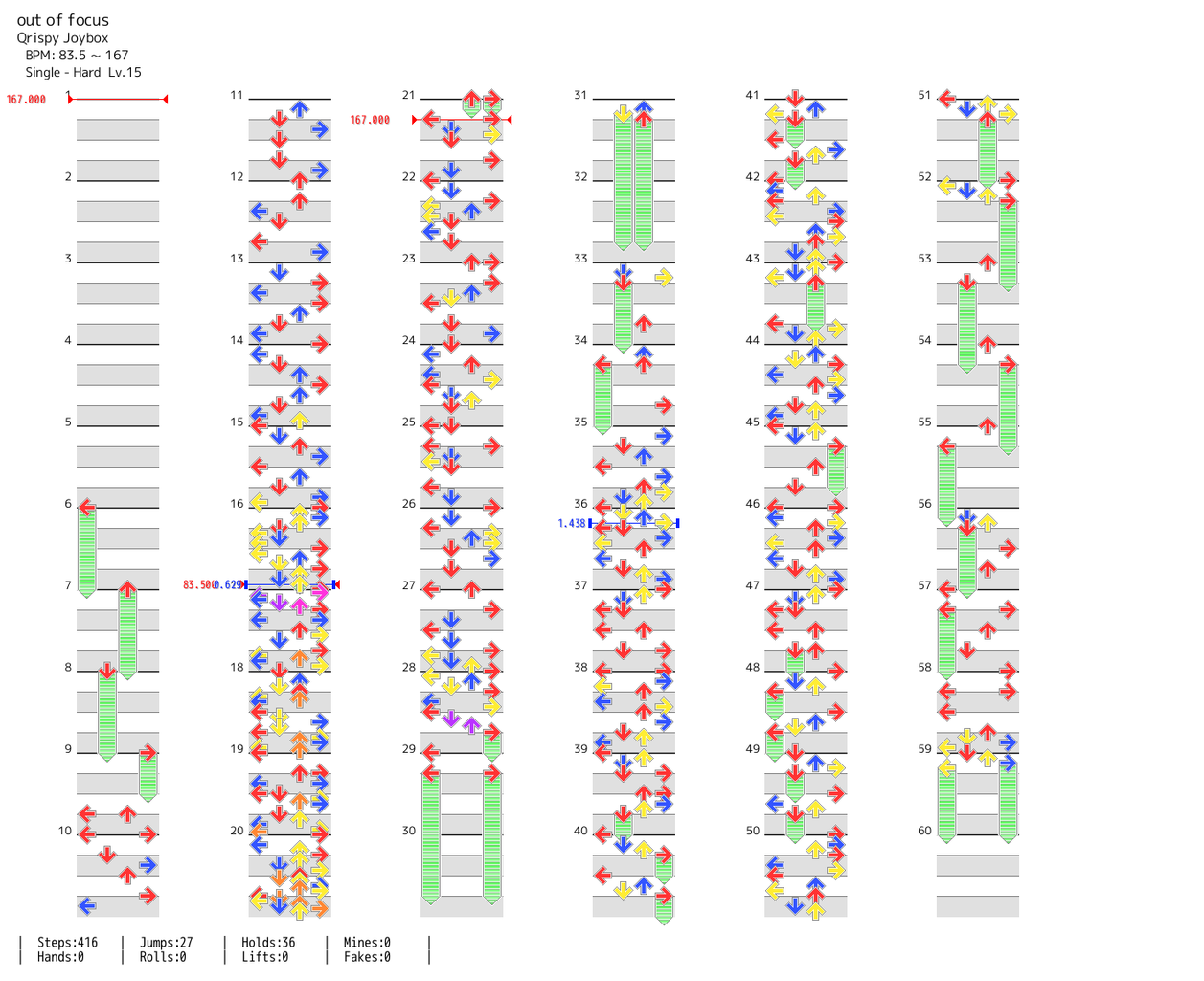 257コンボあたりぐらいからの「16分3連+最後のフリーズアロー」は個人差かもしれないけどグレでやすい。鳥コン狙いなら気を抜かない方がいい - 2017-07-07 21:43:26