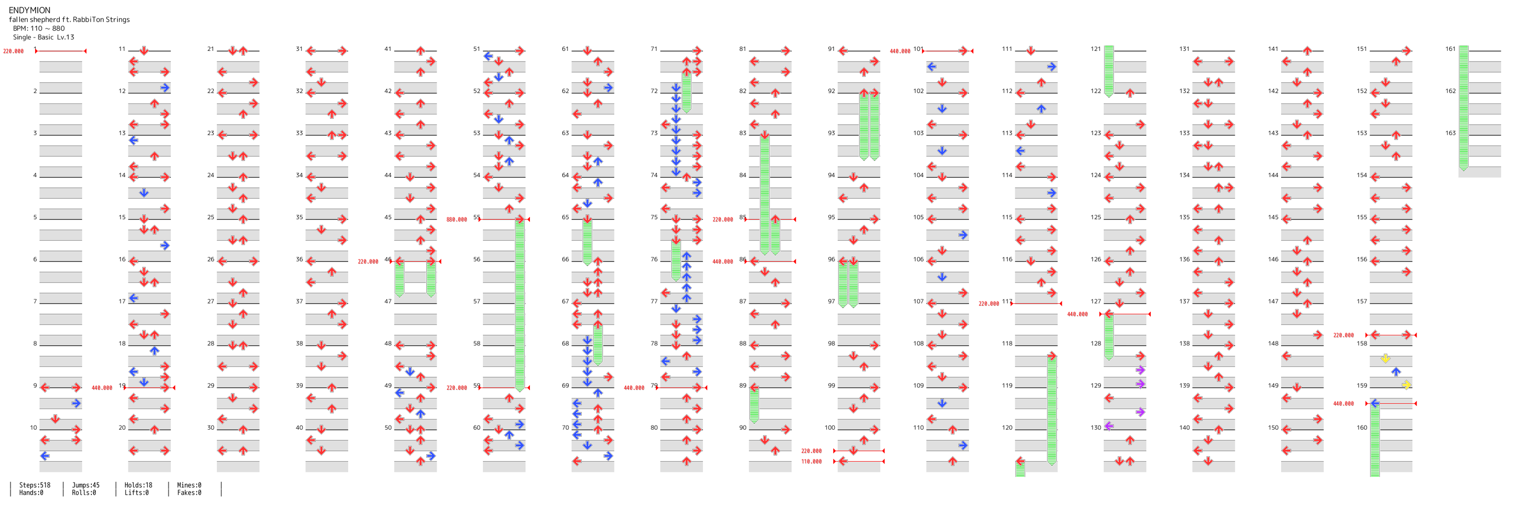 曲の多くを占めるBPM220部分をハイスピなしで合わせるのは難しい。440部分で捻りながら光らせるのも至難、AAA難度は14クラス。 (2020-03-09 00:05:22)