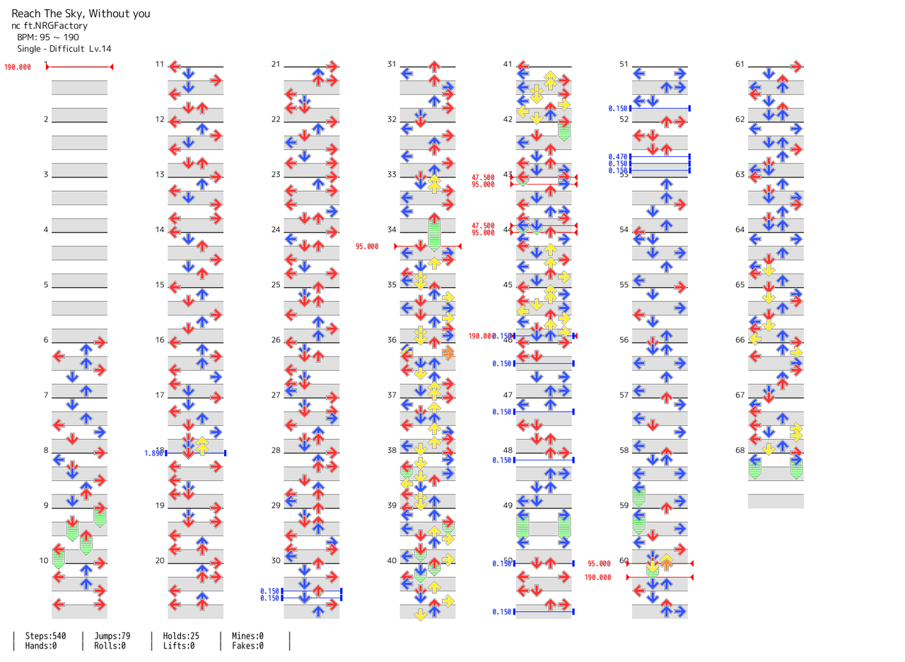 - BPM推移:190-(停止)-190-(停止2回)-190-95-47.5-95-47.5-95-(停止)-190-(停止)-190-(停止)-190-(停止)-190-(停止)-190-(停止)-190-(停止)-190-(停止)-(停止2回)-190-95-190