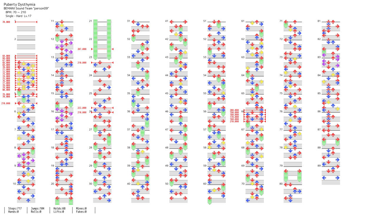 - BPM推移:70-(69~67まで1ずつ減速)-(68~80まで1ずつ加速)-75-210-200-190-180-170-166-210