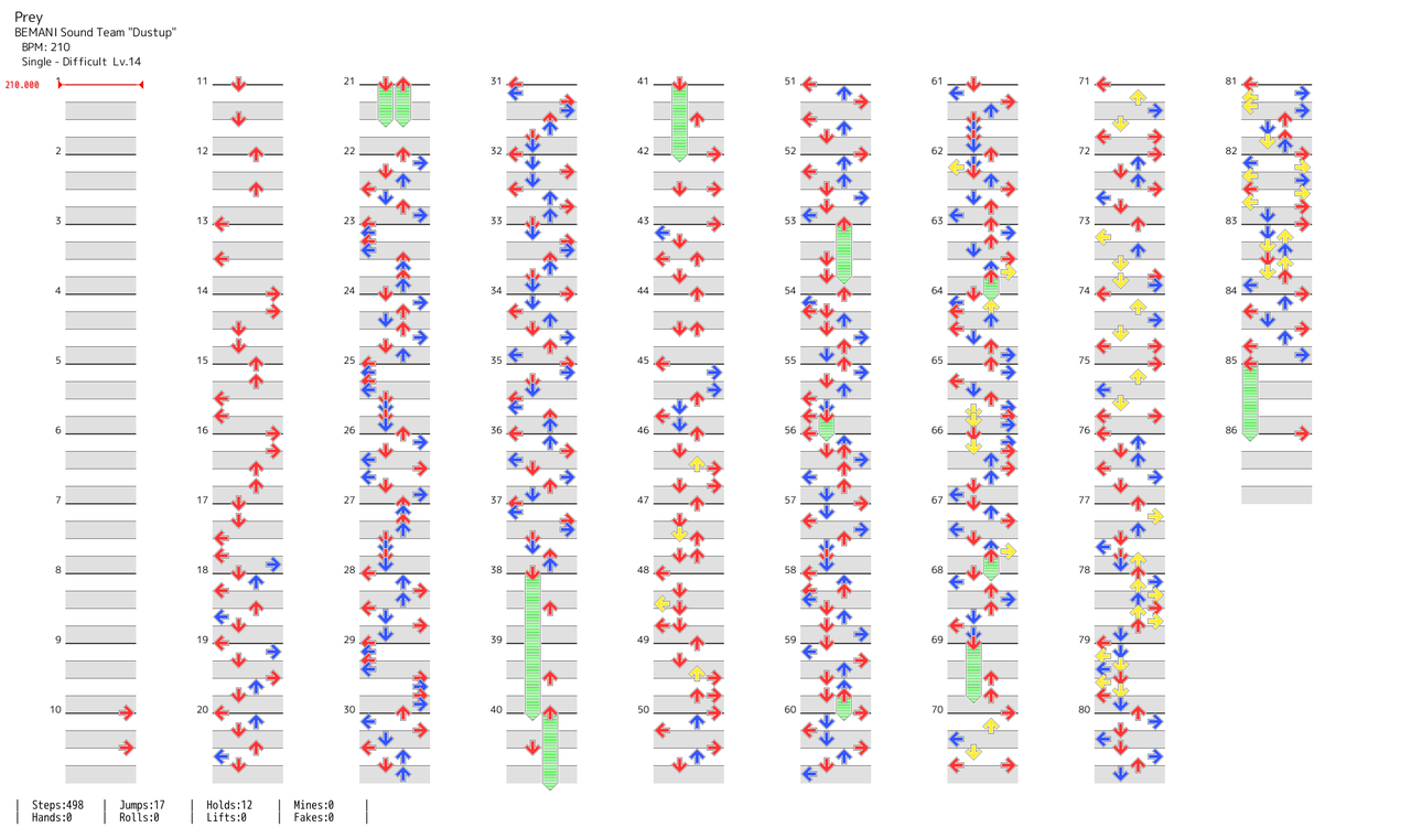 個々の配置は足14に収まるけどBPMが早い為かなり忙しい。特に縦連苦手だとスコアは全く出なくライフだと前半で落ちたりする。詐称気味の足14卒業譜面かと。 (2018-12-16 00:22:17)