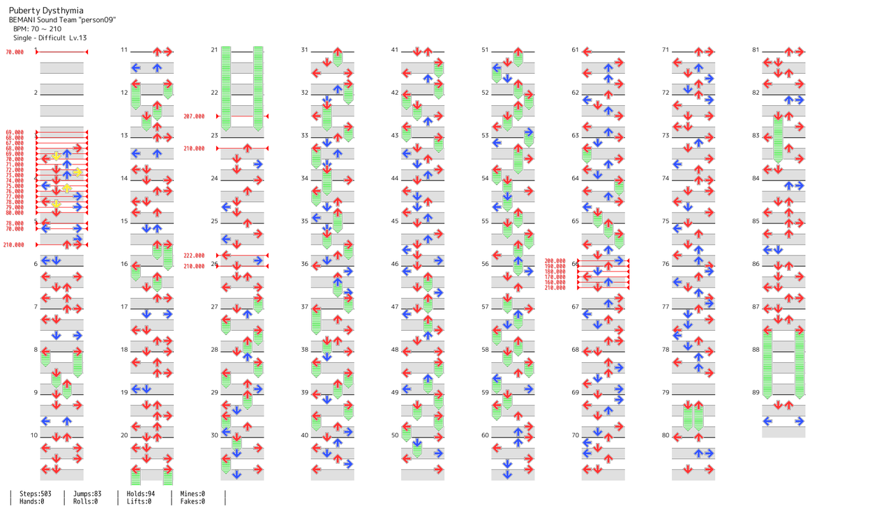 BPM推移:70-(69~67まで1ずつ減速)-(68~80まで1ずつ加速)-75-210-200-190-180-170-166-210