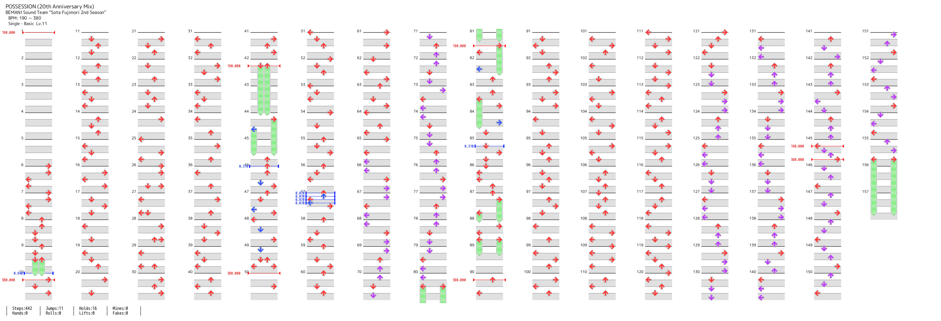 BPM推移:190-(停止)-190(一瞬)-380-190-(停止)-380-(連続停止)-380-190-(停止)-380-190-380