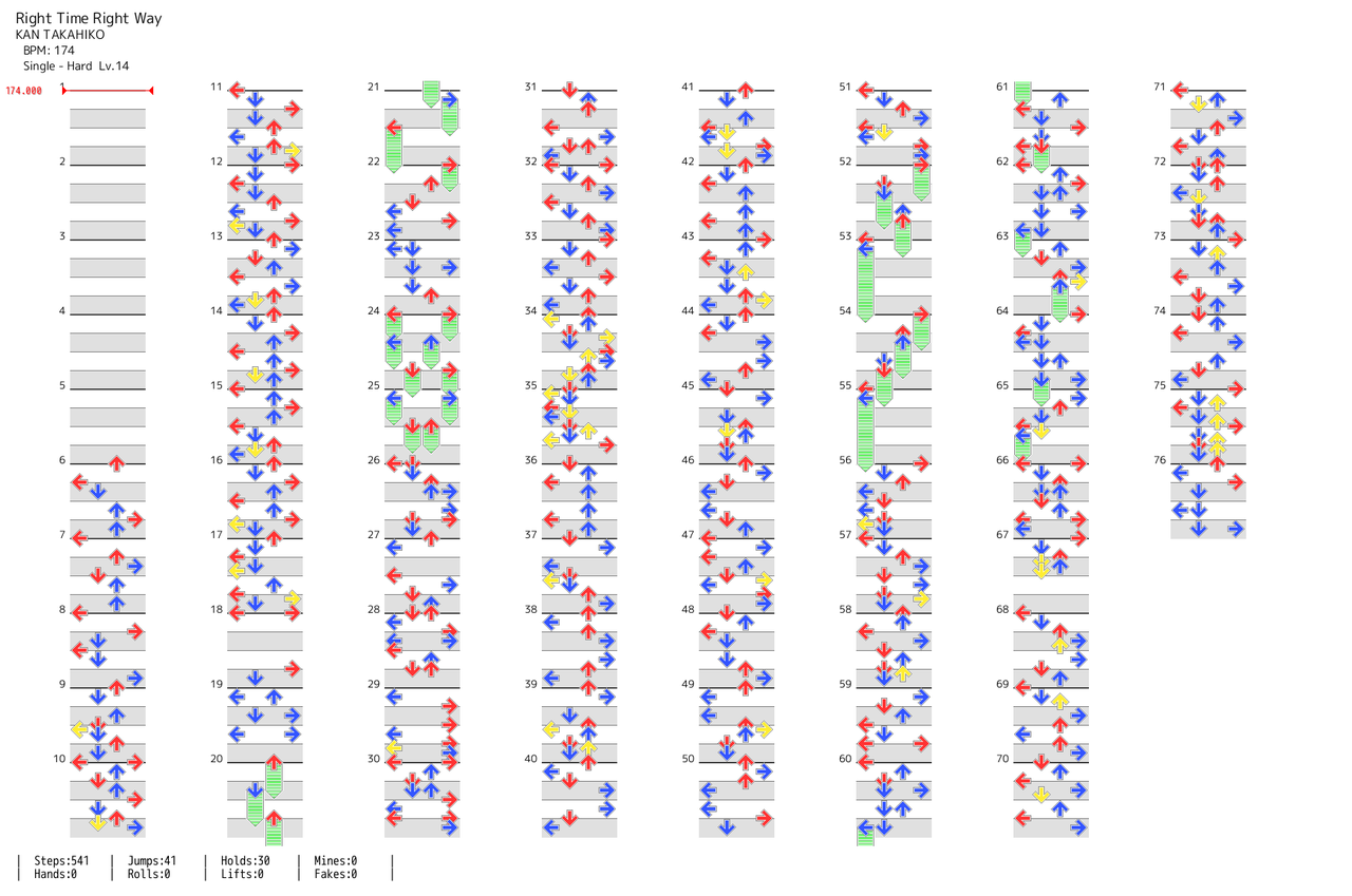 普段8分捻りをスライドしてる人は最序盤(42ノート目)の縦ビジと中盤(310ノート目)の↑から始まる3連に注意。 (2019-07-28 22:16:05)