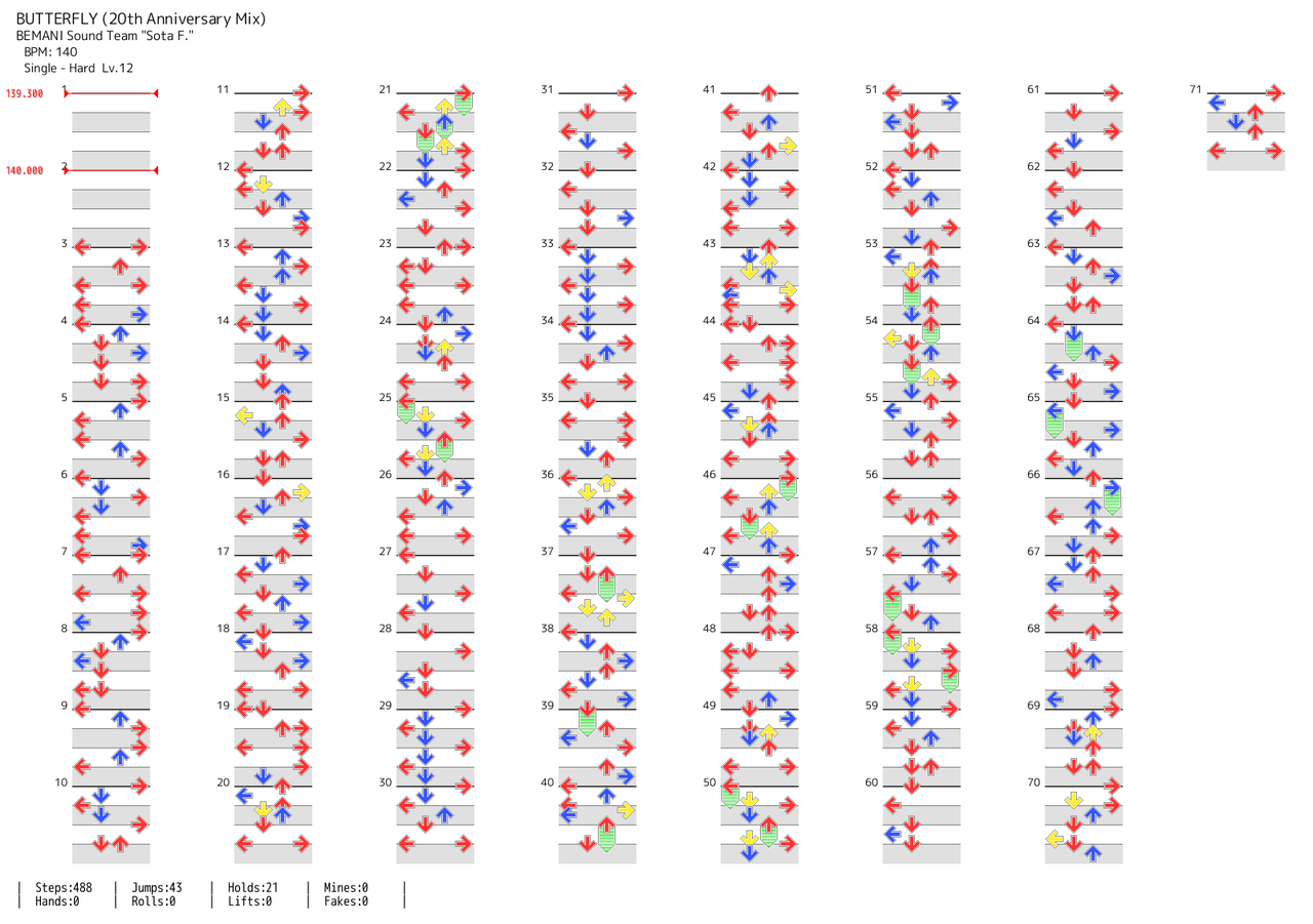 多分引用無い…のかな? 体感の曲長めで445ノーツあるから、中級者は体力配分練習には向いてるかも? (2019-07-26 01:19:41)
