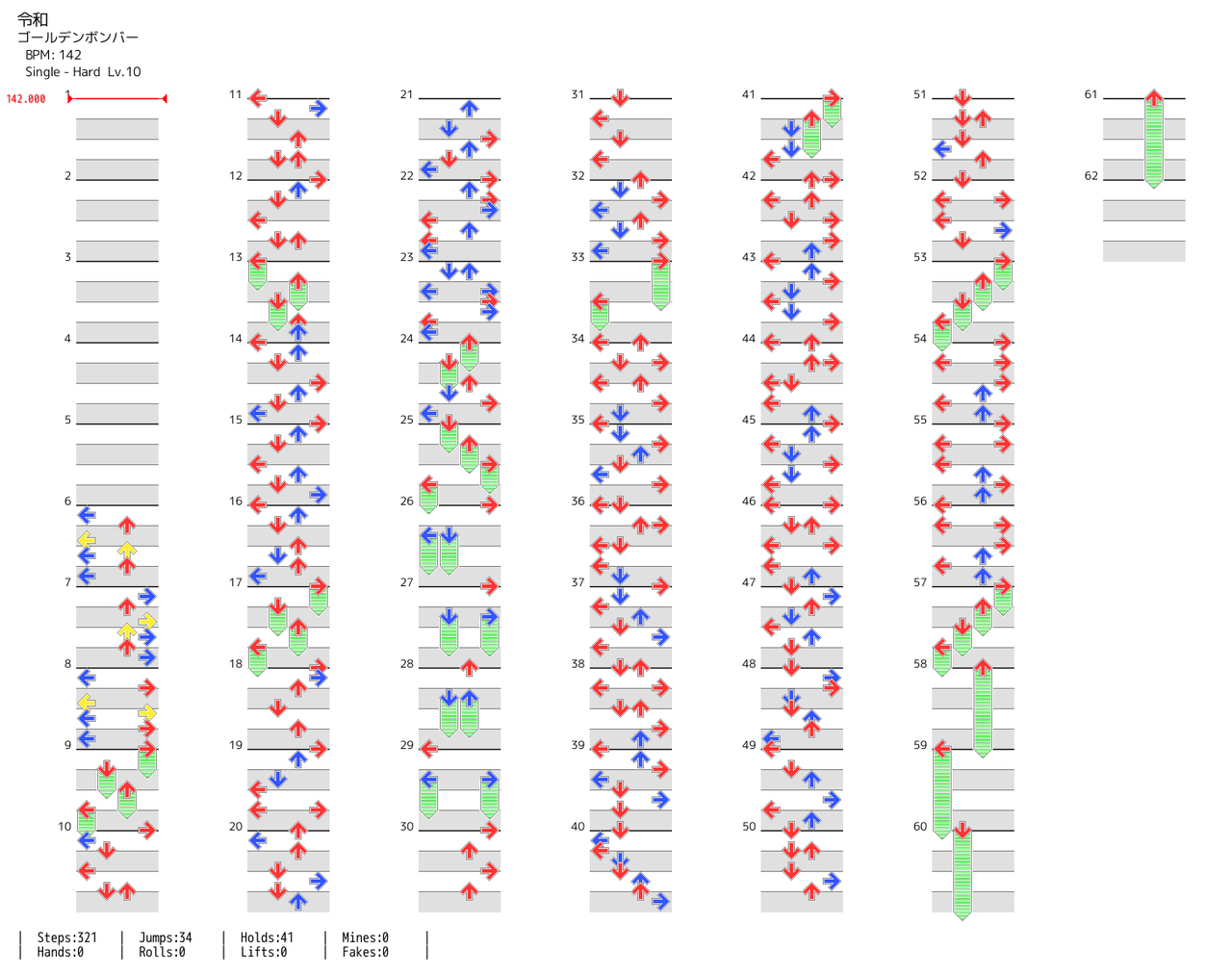 16分、8分交互、縦連、同時、折り返しビジ、アフロ、FA絡みが詰まった幕の内弁当みたいな総合譜面。特に折り返しビジは4パターン全てが入ってる上にアフロとセットになってる配置もあり練習に最適。 足10として見ると詐称だが全交互が出来るまで踏み込みたい良譜面。 (2019-12-22 12:48:23)