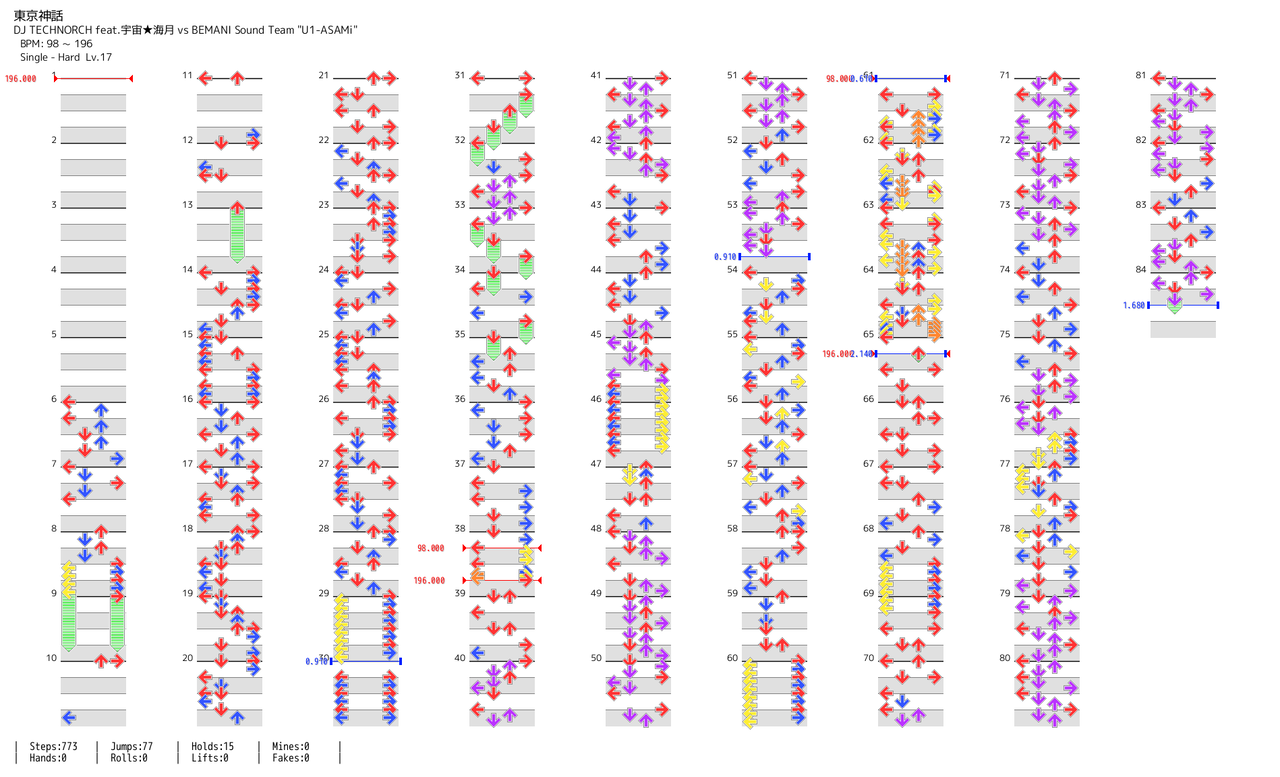 - BPM推移:196-(停止)-196-98-196-(停止)-196-(停止)-98-(停止)-196-(停止)-196