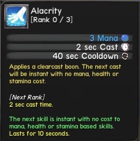 ランク | 開放レベル | 消費マナ | キャスト | クールダウン | 効果時間 |