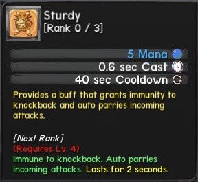 短時間全ての攻撃をパリィし、ノックバックを無効化する。