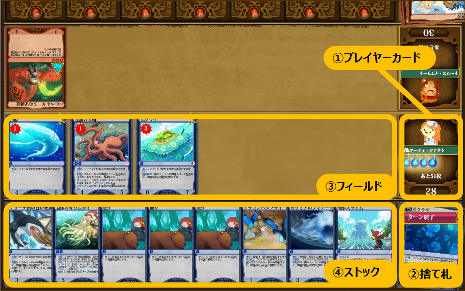 召喚したモンスターやアイテムが置かれる場所です。100枚までカードを置けます