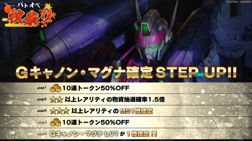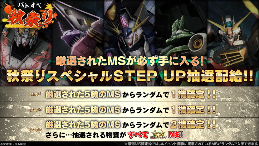 - ②毎週開催!MSが確定入手できるSTEP UP抽選配給!