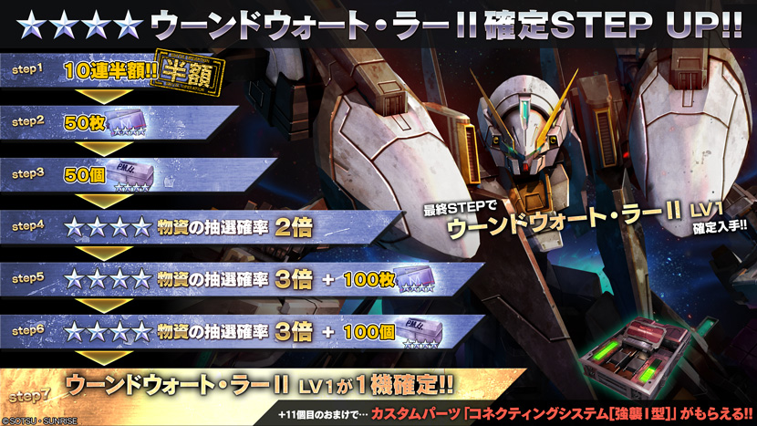 STEP7(トークン30枚):ウーンドウォート・ラーⅡLv1確定!+おまけでカスタムパーツコネクティングシステム[強襲Ⅰ型]LV1がもらえる!