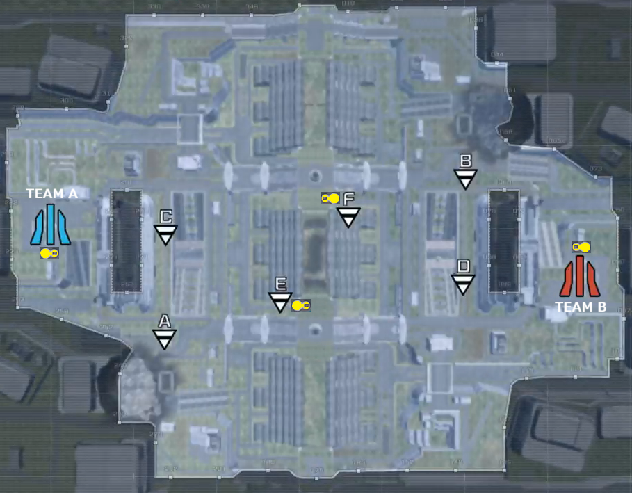 - マップの特性上、中継点C/Dより中継点A/Bのほうが戦術的価値が高いため、中継点A/Bは必ず確保したい。特に中継点を確保できていないと本拠点決戦になりやすいが、本マップの本拠点周辺は籠ったり応戦するのに向いていないため、下手するとリスキルに持ち込まれるリスクがある。