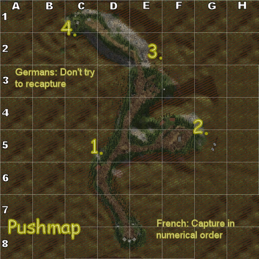 フランス軍は「修道士の森」を制圧する戦闘を開始した! ドイツ軍をドイツ本土へ徐々に押し戻すために! フランス軍は指定されたルートに沿って陣地を制圧することができ、ドイツ軍は制圧された陣地を奪還することができない! 制圧区域に残るドイツ兵は残らず排除せよ!