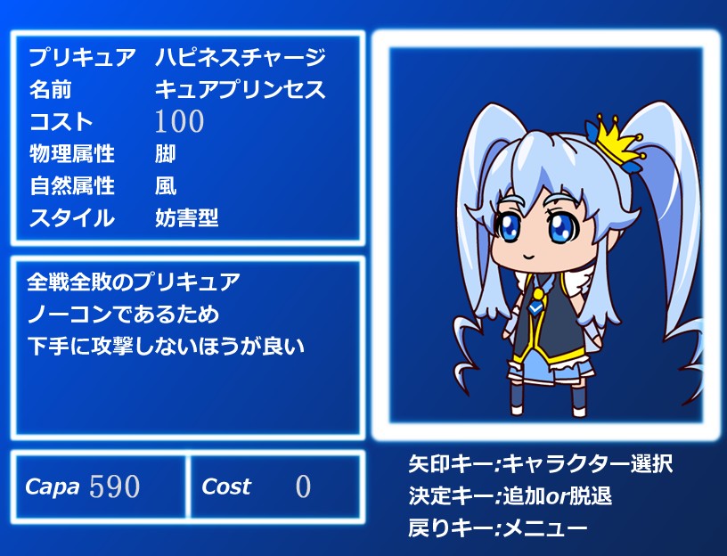 さらには、同じような境遇のキュアハッピーと違って通常攻撃にて戦闘に参加でき、また脚属性である。
