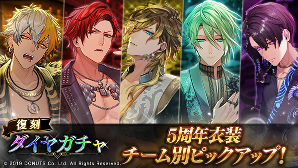 5周年衣装の★4、★3カードをチーム別に復刻ピックアップしたガチャである。