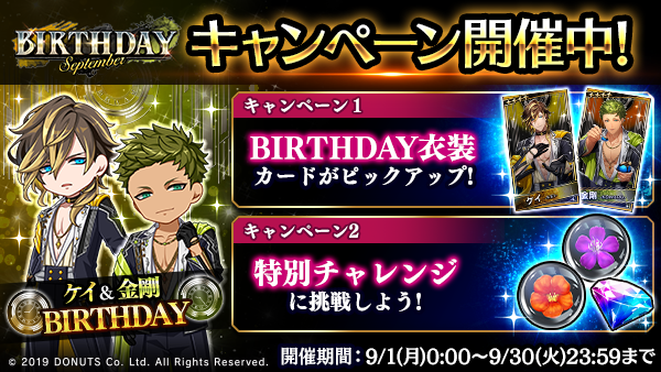 9月1日(月)0:00より9月誕生日キャストを祝うBIRTHDAYキャンペーン【September】が開催される。