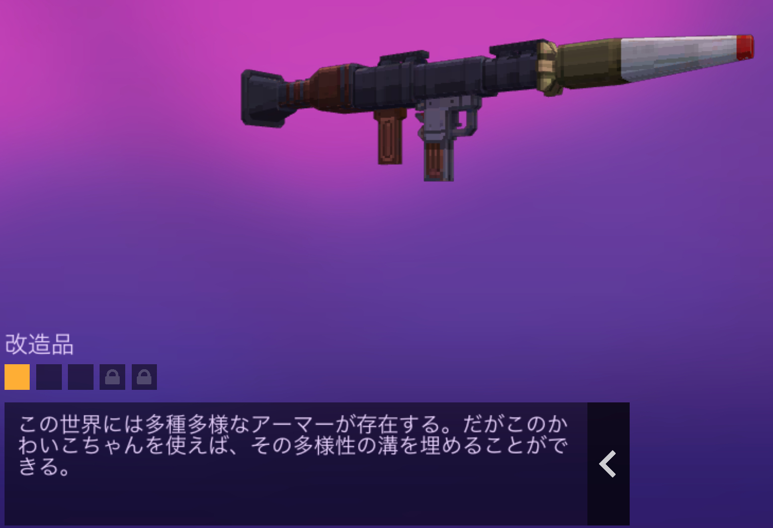 この武器はRPG-7が元となり、ロケットランチャーの中では定番的。